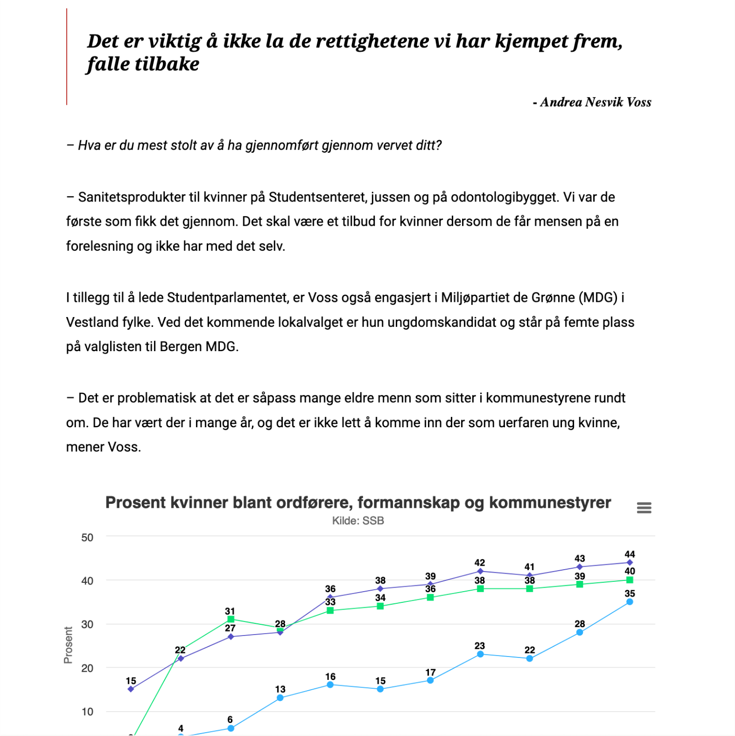 8.mars artikkelen om hvilke kvinner som styrer studentbergen var den første spesialartiklen jeg jobbet med i Studvest.